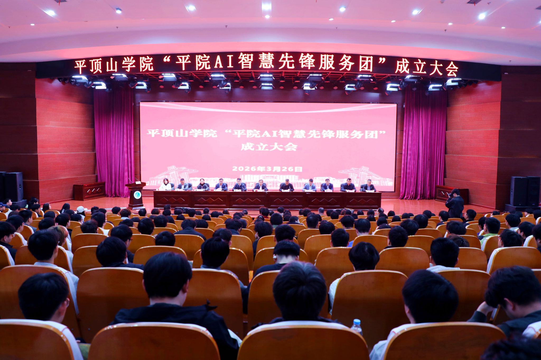 3月26日,我校“平院AI智慧先锋服务团”成立大会在中心会议室举行,副校长于长立出席活动并讲话,学校相关职能部门负责人及人工智能学院师生代表参会,大会由人工智能学院党委书记张喜顺主持。